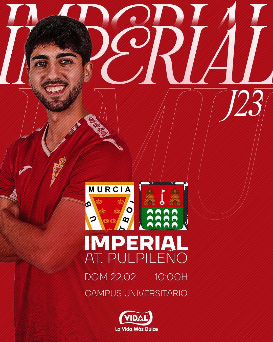 Incidencias: Partido disputado a las 10:00 horas del domingo 22 de febrero de 2026 en el campo principal del Campus universitario de Espinardo (área 4). Choque correspondiente a la vigésimo tercera jornada de Liga del Grupo XIII de la Tercera RFEF. Unos 150 espectadores en una mañana soleada. Los abonados pagaron 5 euros y la entrada general costó 10 euros.