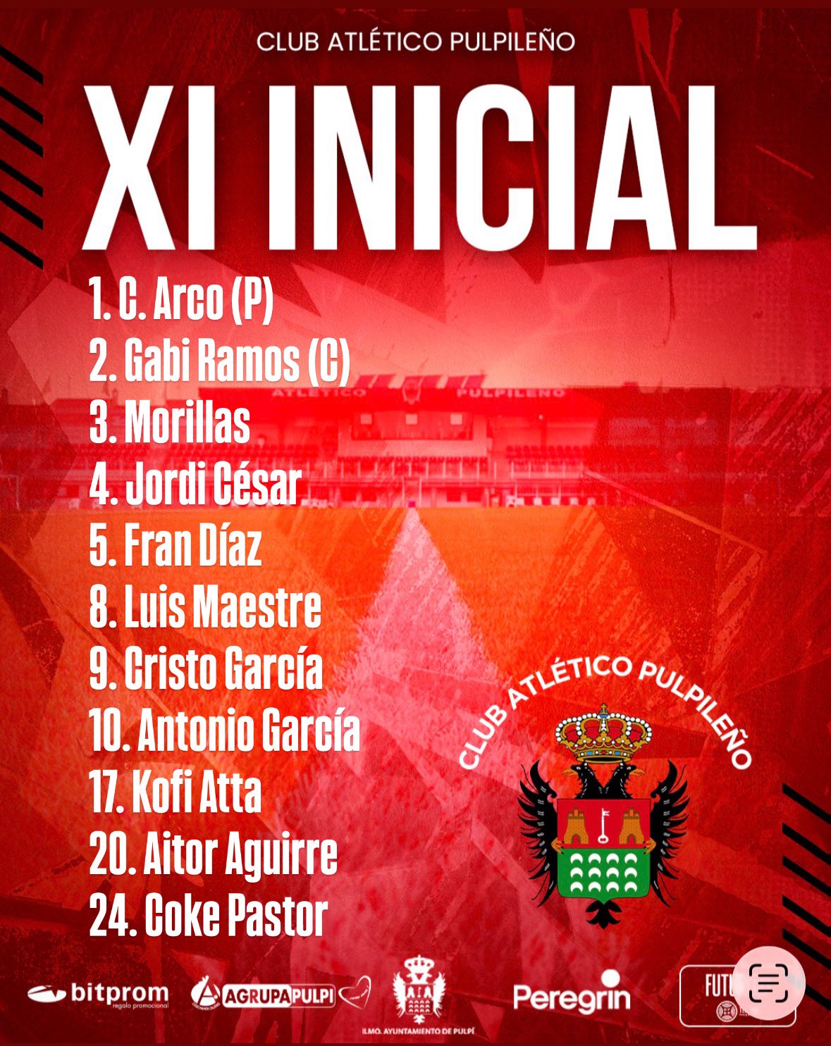 Alineación del Atlético Pulpileño: Arco; Gabi Ramos, Morillas, Jordi César, Fran Díaz, Luis Maestre, Cristo García, Antonio García, Koffi Atta (Morales 63'), Aitor Aguirre (Rubén Hernández 54') y Coke Pastor (Magaña 84').