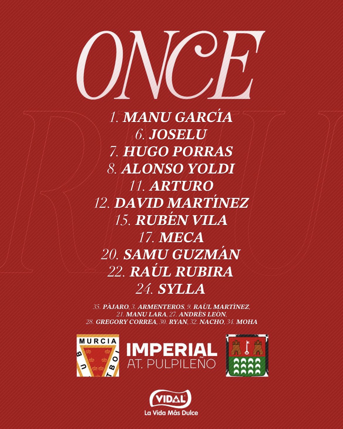 Alineación del Imperial: Manu García; David Martínez, Joselu, Sylla; Yoldi, Rubén Vila, Samu Guzmán (Gregory Correa 86'), Yoldi, Arturo Pedreño (Lara 58'); Meca, Porras (Raúl Serrador 17') y Rubira (Nacho García 86').