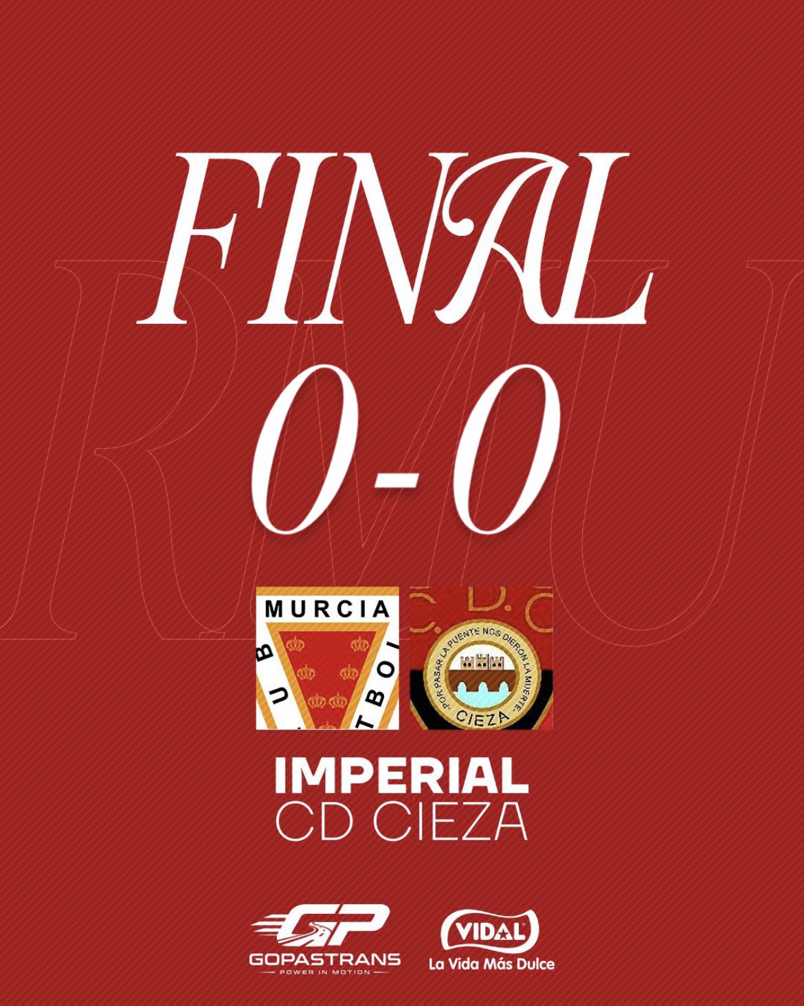 Fue un partido igualado. La falta de puntería y el acierto bajo palos del georgiano Saba Kajaia impidieron que el Cieza, pese a sus numerosos intentos, se llevara los tres puntos del feudo grana. El árbitro anuló un gol, por mano, al ciezano Ayoub antes del descanso. El Imperial, que mejoró en la segunda parte, solo se anotó en el primer periodo un disparo lejano de Samu Guzmán. Florian Taulemesse gozó de varias ocasiones para abrir el marcador, pero el punta francés no estuvo acertado de cara a portería.