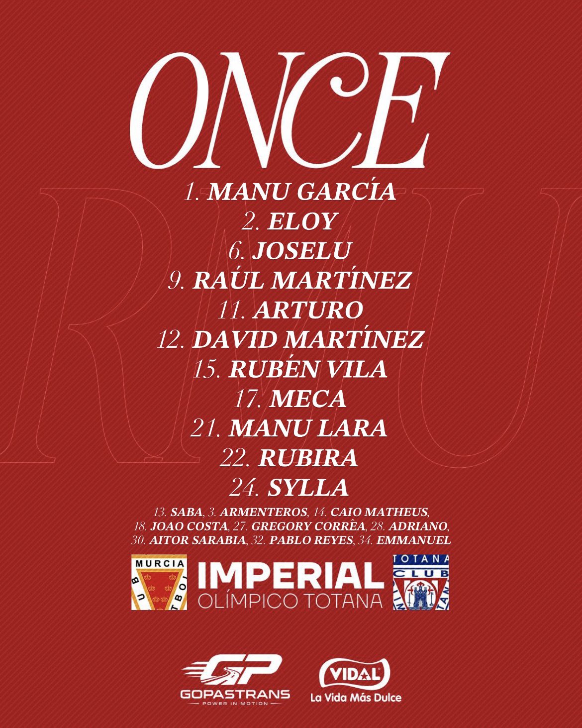 PD1: Se quedarron fuera de la convocatoria el lesionado Kayode (no reaparecerá hasta abril) y los convocados con el primer equipo: Jorge Sánchez y Yoldi. Están lesionados de larga duración y se pierden la temporada Carlos Zaragoza, Luizinho, Izan y Quetglas.