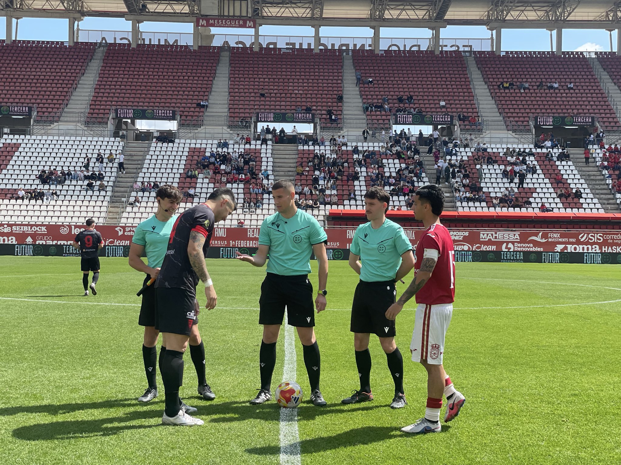 Incidencias: Partido disputado a las 12:00 horas del sábado 28 de marzo de 2026 en el estadio Enrique Roca (Nueva Condomina). Choque correspondiente a la vigésimo octava jornada de Liga del Grupo XIII de la Tercera RFEF. Unos 400 espectadores en una mañana soleada. Los abonados pagaron 5 euros y la entrada general costó 10 euros.
