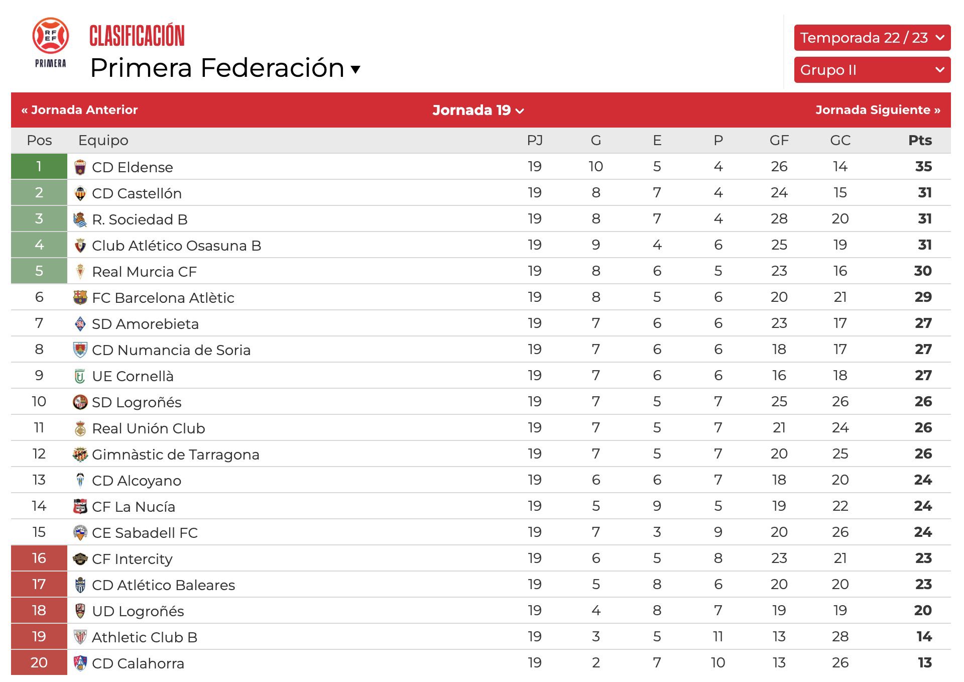 La próxima jornada el Real Murcia recibirá al filial del Athletic Club de Bilbao. El partido se jugará el sábado 21 de enero a partir de las 19:00 horas en el estadio Nueva Condomina.