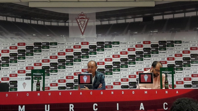 Vicente Mir, entrenador del Real Murcia, atendió a la prensa en la remozada sala de prensa del estadio Condomina este viernes. Este domingo el Atlético Mancha Real visita Murcia pero Mir no se fía de los jienenses: "Es un partido un poco trampa. Nosotros somos favoritos. Tanto ellos como nosotros nos jugamos muchísimo, y en el campo tenemos que demostrar que somos mejores. Vamos a salir como si fueran un equipo de arriba. Tenemos que tener posesión. Ellos tienen una buena contra".